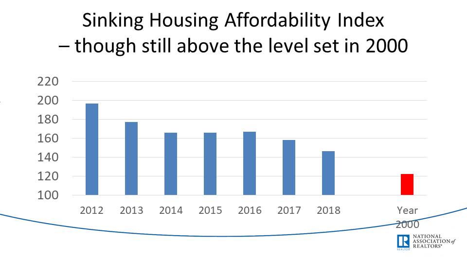 Sinking affordability index, better than 2000. Because we are still above 2000 levels, Dr. Yun concludes that this is positive. But I see homes becoming less affordable, which cannot be a positive piece of data.