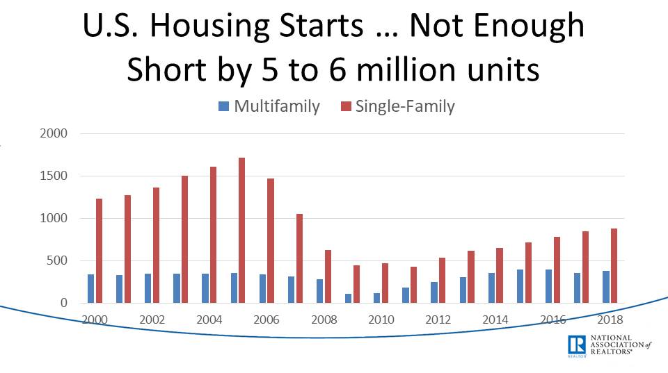 Dr. Yun said that he sees homeowners staying longer, slower economic growth, and home prices outpacing income growth. If we took action to remove local restraints such as zoning laws and the permitting process, we might see more efficient construction. He also thinks more kids should go to trade schools so we have more skilled labor. We might increase federal spending for assisting in the creation of jobs that have to do with home construction. Local economies might give tax incentives to develop and re-develop. These things will all help with the issues described above.