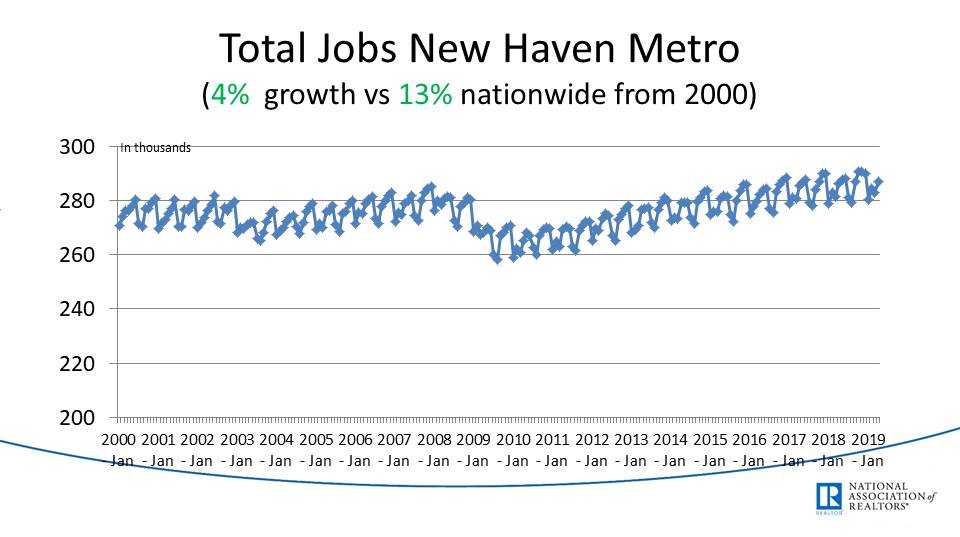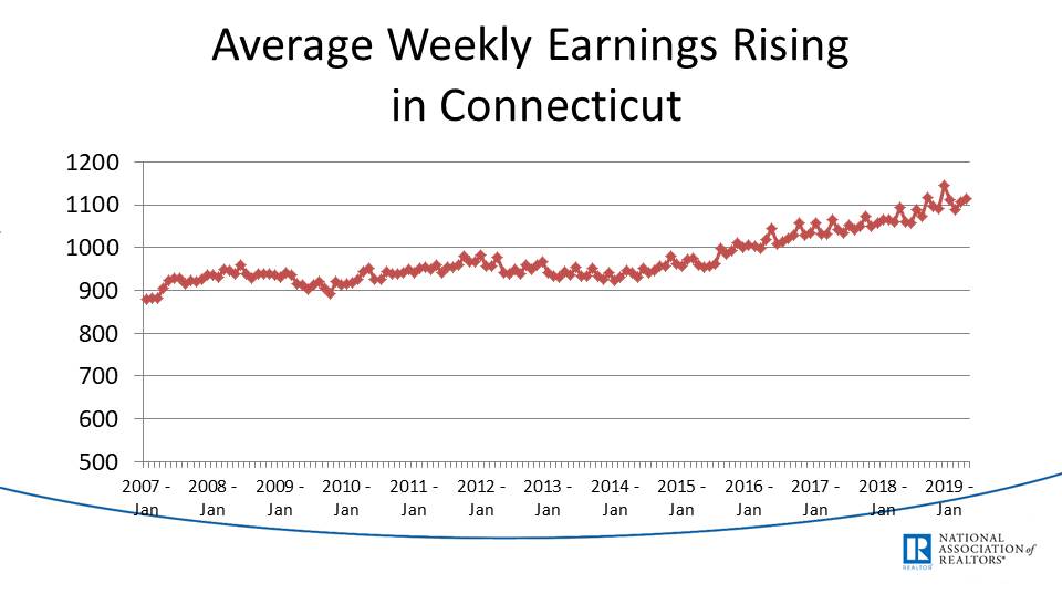Home sales slid at end of 2018, but a fall in interest rates made Jan or march increase in 2019. Again, I would believe these are down in CT based on what I have seen locally (In Norwalk, for example, sales were 160 in Q1 2019 compared to 175 in Q1 2018, an 8.6% decrease in existing home sales.)