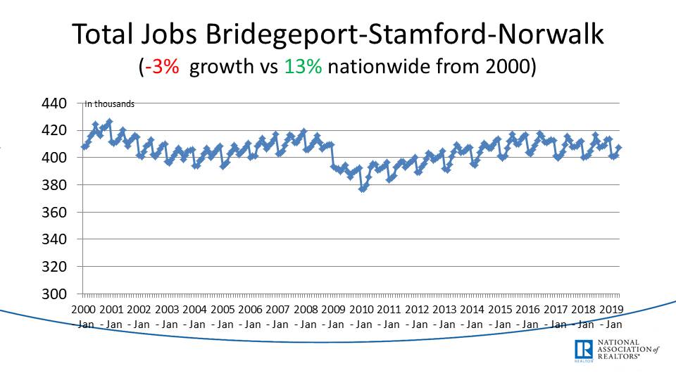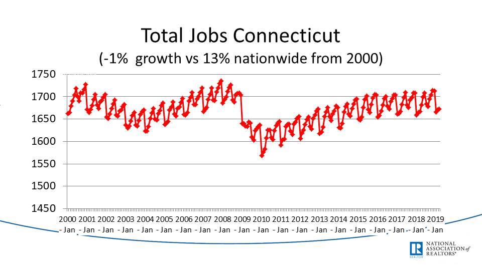 Total job creation in CT shows that there are about 100k more jobs than a decade ago during the foreclosure crisis.