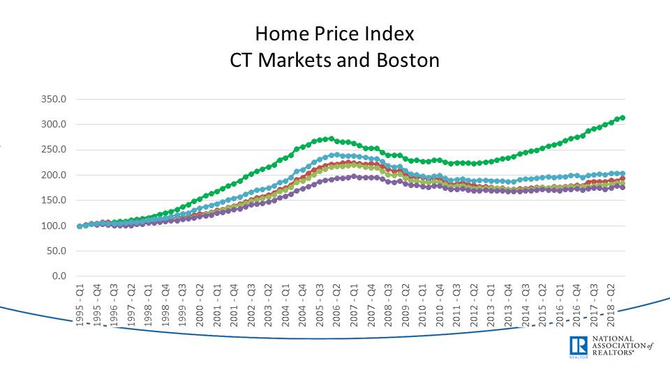 Home prices in CT and Boston as averages.
