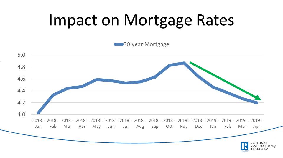 Mortgage rates came down again after 2018 after a rising environment of rates. This is great to promote more buying. However, it's not an indicator of a positive economy, just a product of low Fed Interest Rates.