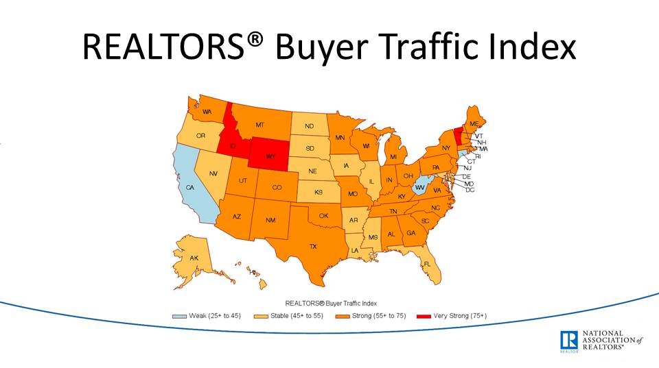 Connecticut, California, and West Virginia are the states with the lowest reported buyer traffic according to Realtors®.
