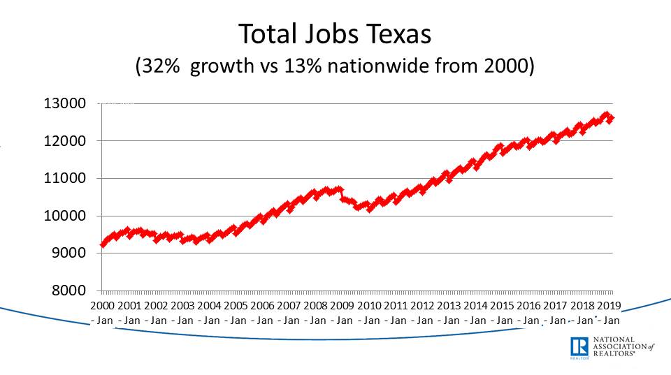 Total jobs in Texas, also in thousands.