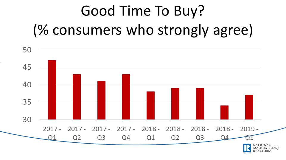 Consumer confidence in ‘good time to buy is lower than in 2017, but on the rise slightly from 2018. This is something I would draw a different conclusion from since I see a negative trend in consumer confidence over the prior two years that this graph shows.
