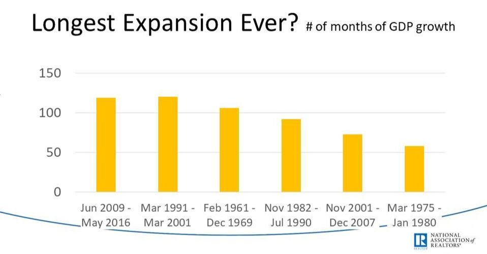 The United States has had the longest economic expansion ever as of July of this year, based on several months of GDP growth.