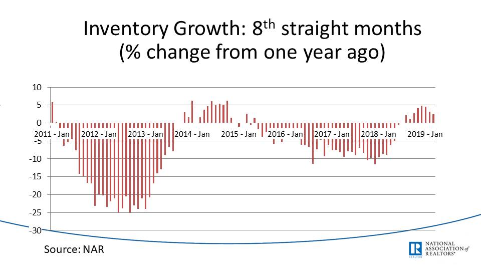 Inventory is increasing, but it was low in 2017 and 2018, country-wide. Dr. Yun described this as a positive change because no inventory means that home sales stagnate (no inventory to sell). However, I perceive an increase in inventory as a negative sign.